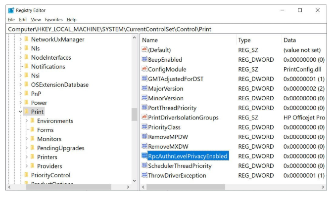 Khi hoàn tất, tính năng bảo mật RPC gây xung đột sẽ bị vô hiệu hóa, và máy tính có thể kết nối với máy in chia sẻ như bình thường.
